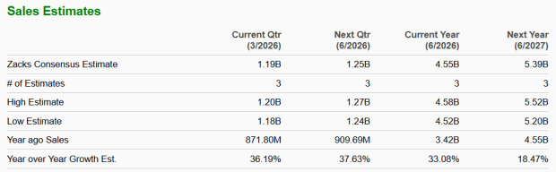 Looking ahead, Fabrinet expects telecom and datacom markets to show strong growth in the third quarter of fiscal 2026. Strong demand for optical products used in telecom and data center networks is expected to support further growth in the optical communications segment. The Zacks Consensus Estimate for fiscal 2026 and 2027 revenues indicates a year-over-year increase of around 33.1% and 18.5%, respectively.