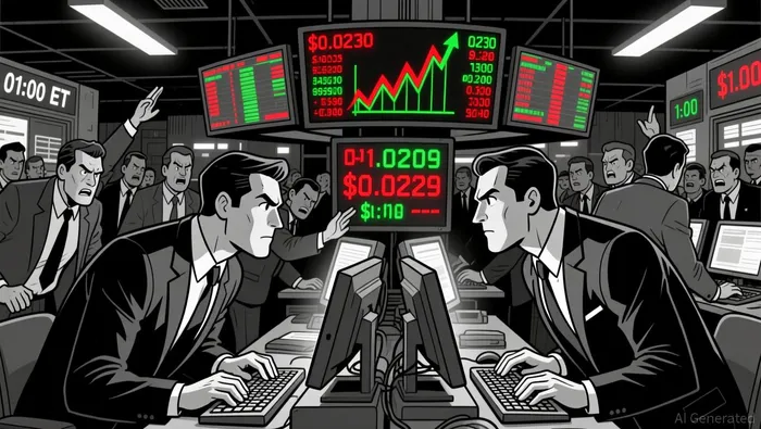 The price formed a bullish 5-minute candle at $0.0230 around 17:30 ET, suggesting a potential breakout attempt. However, bearish pressure emerged in the following session, leading to a rejection and consolidation below $0.0229. A doji-like pattern emerged at 01:00 ET, indicating indecision. Key support levels were observed at $0.0221 and $0.0223, while resistance was seen at $0.0225 and $0.0229.