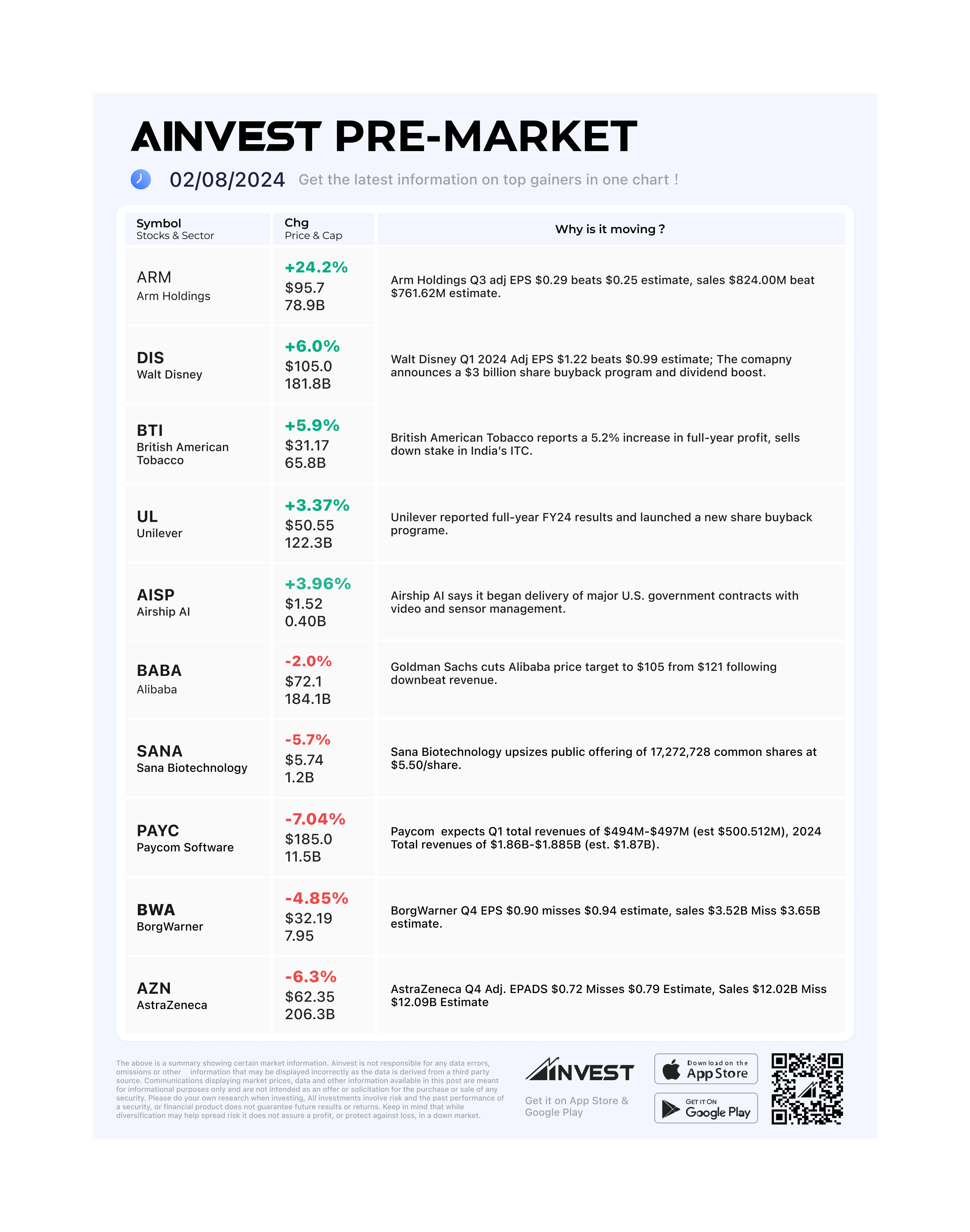 Feb. 08 Pre-market Movers Board: ARM surges 20% as Q3 sales, profit beat