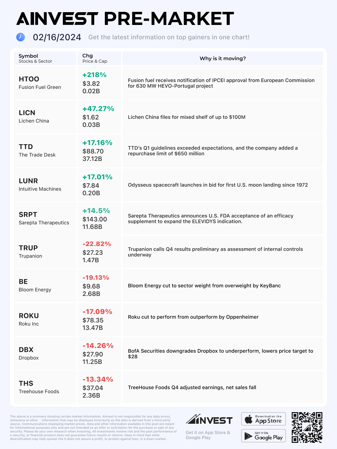 Feb. 16 Pre-market Movers Board: Roku down 17% after disappointing Q1 result