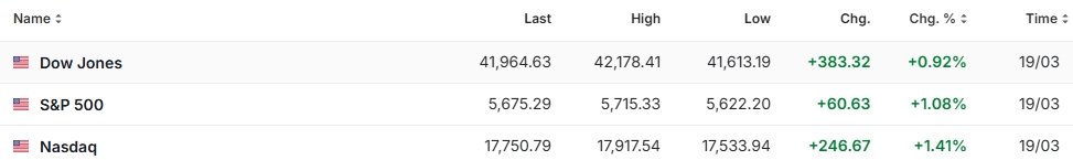 Despite these concerns, markets responded positively, with stock indexes climbing after the announcement (Nasdaq increased 1.41%, S&P 500 increased 1.08% and Dow Jones increased by 0.92%). Investors seemed relieved that the Fed avoided a hawkish pivot, which some had feared amid the upward inflation revision. The central bank's emphasis on patience and flexibility—rather than aggressive tightening—provided a sense of stability, even as analysts cautioned that uncertainties around tariffs could keep markets volatile in the months ahead.