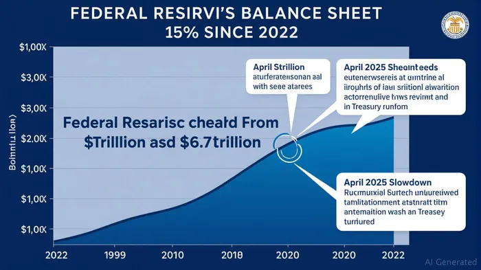 The Fed's gradual reduction of its balance sheet—now at $6.7 trillion—has been recalibrated to prioritize financial stability. Starting April 2025, the monthly runoff of Treasury holdings was slashed from $25 billion to $5 billion, while agency MBS reductions remained capped at $35 billion. This slowdown aims to prevent abrupt liquidity shortages as reserve balances (currently $3.4 trillion) transition to the “ample” threshold. The Fed defines ample reserves as a level where money markets operate smoothly without excessive volatility, but the exact metric remains fluid.