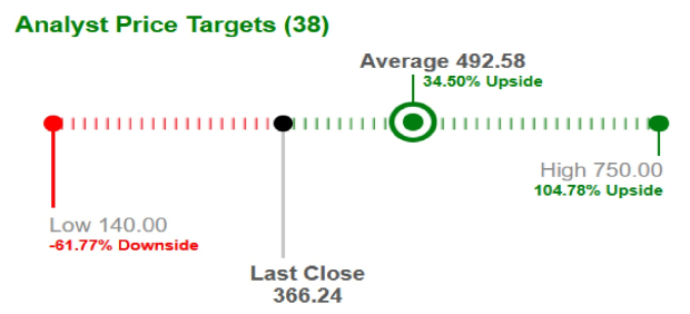 Brokers are also bullish on Micron’s growth prospects. They estimate an average short-term price target for MUMU-- stock at $492.58, a 34.5% increase from the last closing price of $366.24. The highest target is $750, suggesting a potential upside of 104.8%.
