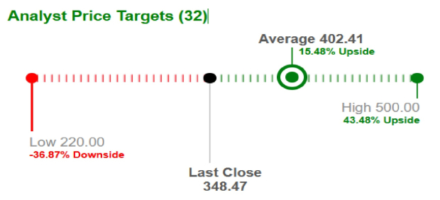 As a result, the company’s projected earnings growth rate for the current year is a solid 17.8%. Brokers, too, are optimistic about Applied Materials’ growth prospects. They forecast the average short-term price target for AMATAMAT-- stock at $402.41, reflecting a 15.5% increase from the last closing price of $348.47. The highest target is $500, suggesting a potential upside of 43.5%.