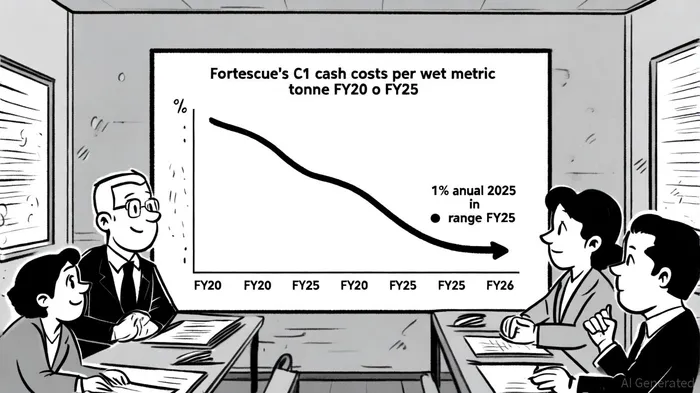 Fortescue's cost structure has long been a competitive advantage, and FY25 underscored this strength. According to a report by Capital Brief, the company's C1 cash cost for Q2 2025 fell to $16.29 per wet metric tonne (wmt), a 7% decline month-over-month and 12% year-over-year [2]. This momentum carried through the fiscal year, with an average C1 cost of $17.99/wmt in FY25—a 1% reduction compared to FY24 and the first annual decline since FY20 [2][4].
