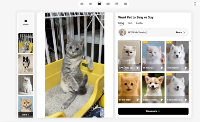 - Creates lip-synced pet videos with customizable voices.