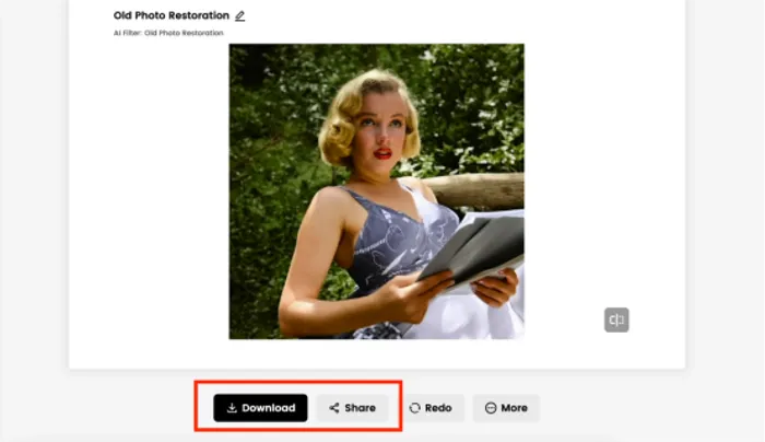 3. Download: Save your high-resolution restored photo or edit further.
