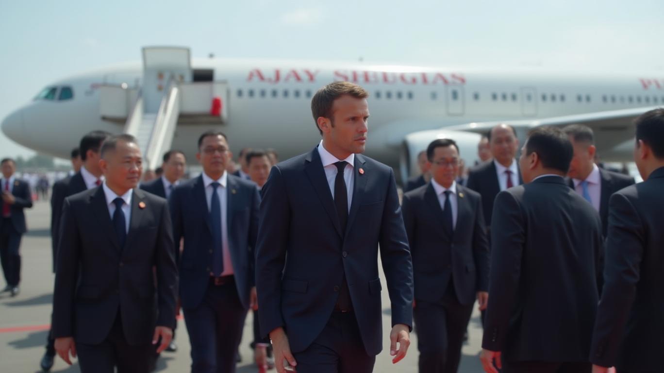 French President Macron arrives in Vietnam amid brief incident before deplaning