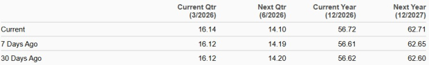 The Zacks Consensus Estimate for GS’s 2026 and 2027 earnings implies year-over-year rallies of 10.5% and 10.6%, respectively. Estimates for both years have been revised upward over the past 30 days.