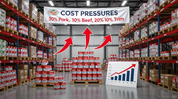 The most immediate threat to Hormel’s margins stems from unrelenting input cost pressures. Pork belly prices surged 30% year-over-year, while pork cutout and trim costs rose 10% and 20%, respectively [5]. These increases were exacerbated by supply chain disruptions, including bird illnesses in turkey production and retaliatory tariffs in the dairy sector [6]. Beef prices also hit record highs, with choice boxed beef trading at $400.57 per hundredweight in Q2 2025, the highest since the early days of the pandemic [3]. Such inflationary forces have forced HormelHRL-- to cut its full-year EPS guidance to $1.43–$1.45, a 12% reduction from its prior forecast [4].
