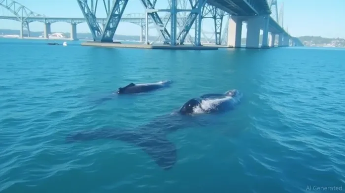 Two humpback whales have been spotted swimming under Melbourne's West Gate Bridge, a rare sighting in living memory. The whales, first seen on Tuesday, were captured on Ports Victoria's traffic cameras. Whale research officer David Donnelly notes that while it's not uncommon for whales to visit the top end of Port Phillip Bay, this sighting is unusual. The whales are believed to have been in the bay since Sunday and may return next year. Melburnians can report whale sightings to the Dolphin Research Institute via the PodWatch platform.