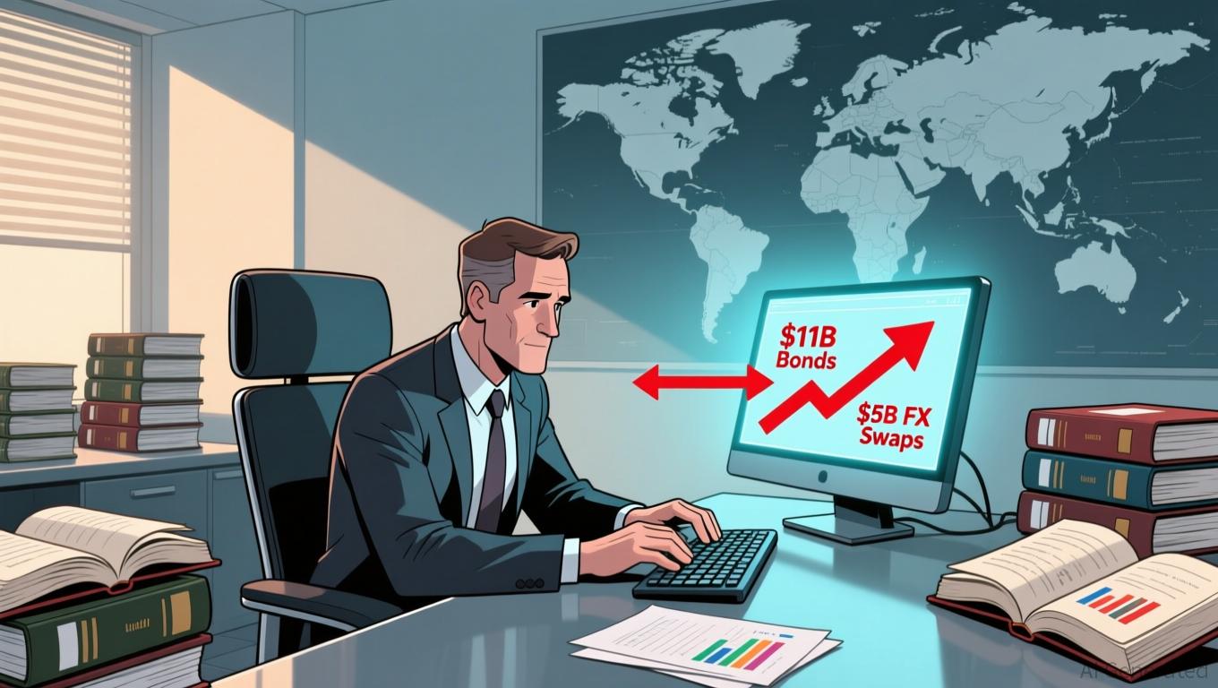 in bonds this month to ease cash pressure on the banking system. In addition, it will engage in a $5 billion foreign exchange (FX) swap, buying dollars now and agreeing to sell them back in three years .