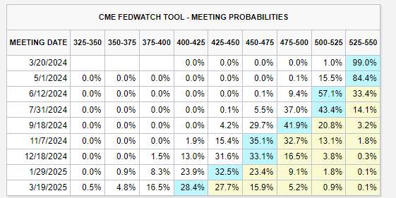 This CPI report further dampened the market's expectations for lower interest rates: after the report was released, FedWatch showed that the probability of the Federal Reserve keeping interest rates unchanged at the interest rate meeting next week has reached 99%, and the probability of first interest rate cut in May has dropped to 15%, and the possibility of a first interest rate cut in June has further fallen to 57%.
