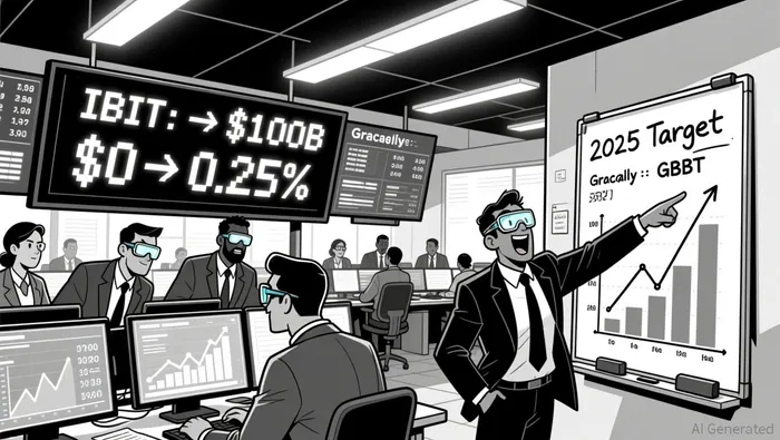 BlackRock's iShares Bitcoin TrustIBIT-- (IBIT) has redefined the cryptoBTC-- landscape. By year-end 2025, IBIT briefly surged to $100 billion in assets under management, becoming the fastest-growing ETF in history. This success stems from BlackRock's strategic focus on institutional-grade infrastructure, a 0.25% expense ratio (the lowest in the sector), and early SEC approval for spot Bitcoin ETFs in January 2024. The firm's market share in the Bitcoin ETF space now stands at 48.5%, with $50 billion in AUM, dwarfing competitors like Fidelity's FBTC and Grayscale's GBTC.
