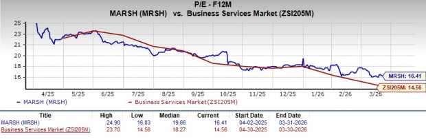 From a valuation perspective, MRSHMRSH-- appears to be priced at a premium. With a market capitalization of about $84.6 billion, the stock trades at a forward P/E of 16.4X, above the industry average of 14.6X, suggesting a relatively rich valuation compared to peers. The company currently holds a Value Score of B.