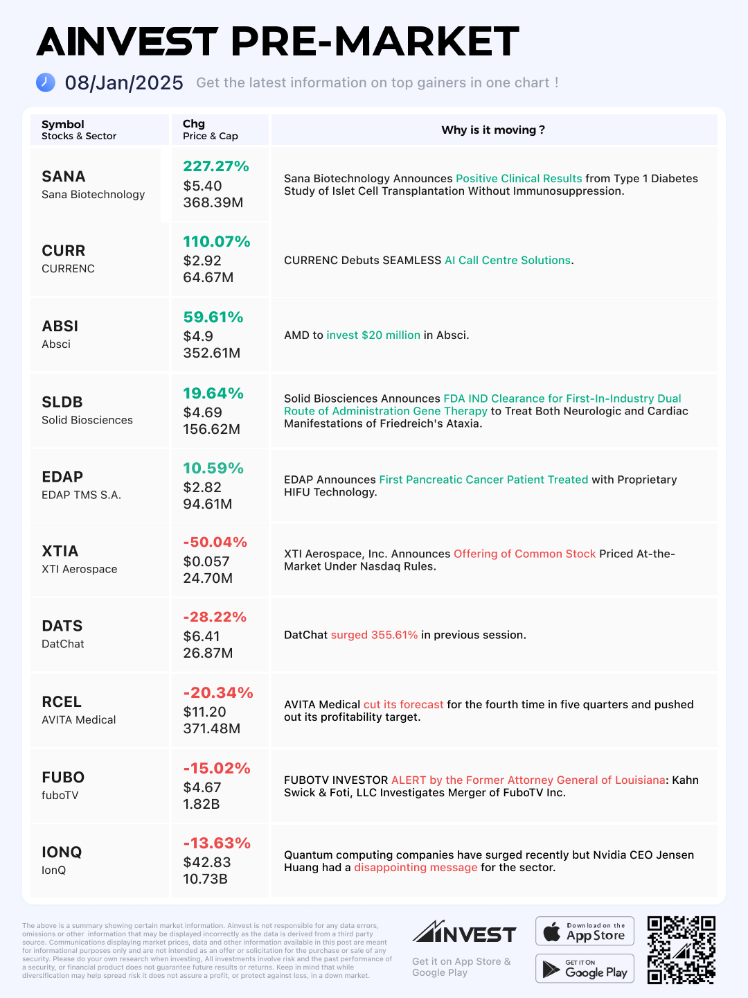 Jan. 08 Pre-market Movers Board: Absci shares rises more than 50% in premarket after AMD to invest $20 million