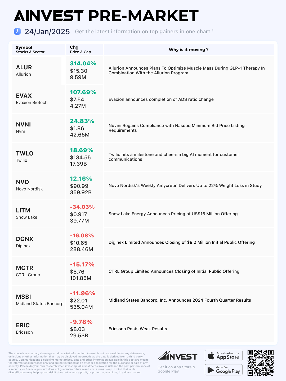 Jan. 24 Pre-market Movers Board: Novo Nordisk Stock Soars on New Weight-Loss Drug Results