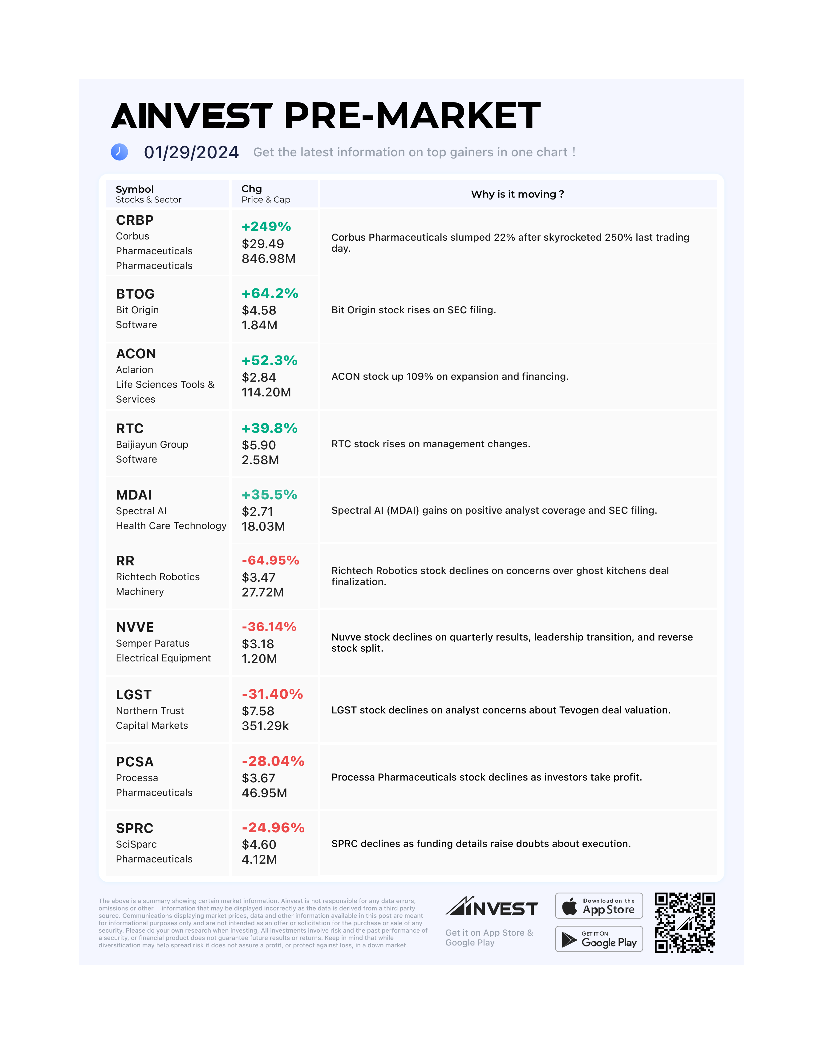 Jan. 29 Pre-market Movers Board: Corbus Pharmaceuticals slumped 22% after skyrocketed 250% last trading day