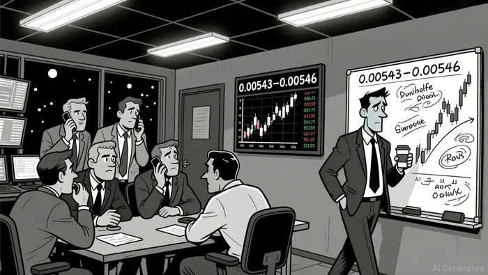 Bollinger Bands experienced a notable contraction in the 1–2 AM ET window before the breakout, a sign of increased volatility. A 5-minute bullish engulfing pattern appeared at $0.00543–0.00546, indicating a potential reversal in short-term sentiment. On the daily chart, price remains below its 50-period and 200-period moving averages, suggesting ongoing bearish pressure despite the intraday rebound.
