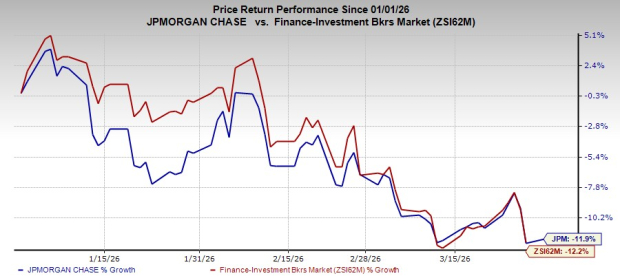 Over the past three months, shares of JPMorgan fell 11.9% compared with 12.2% decline of the industry.