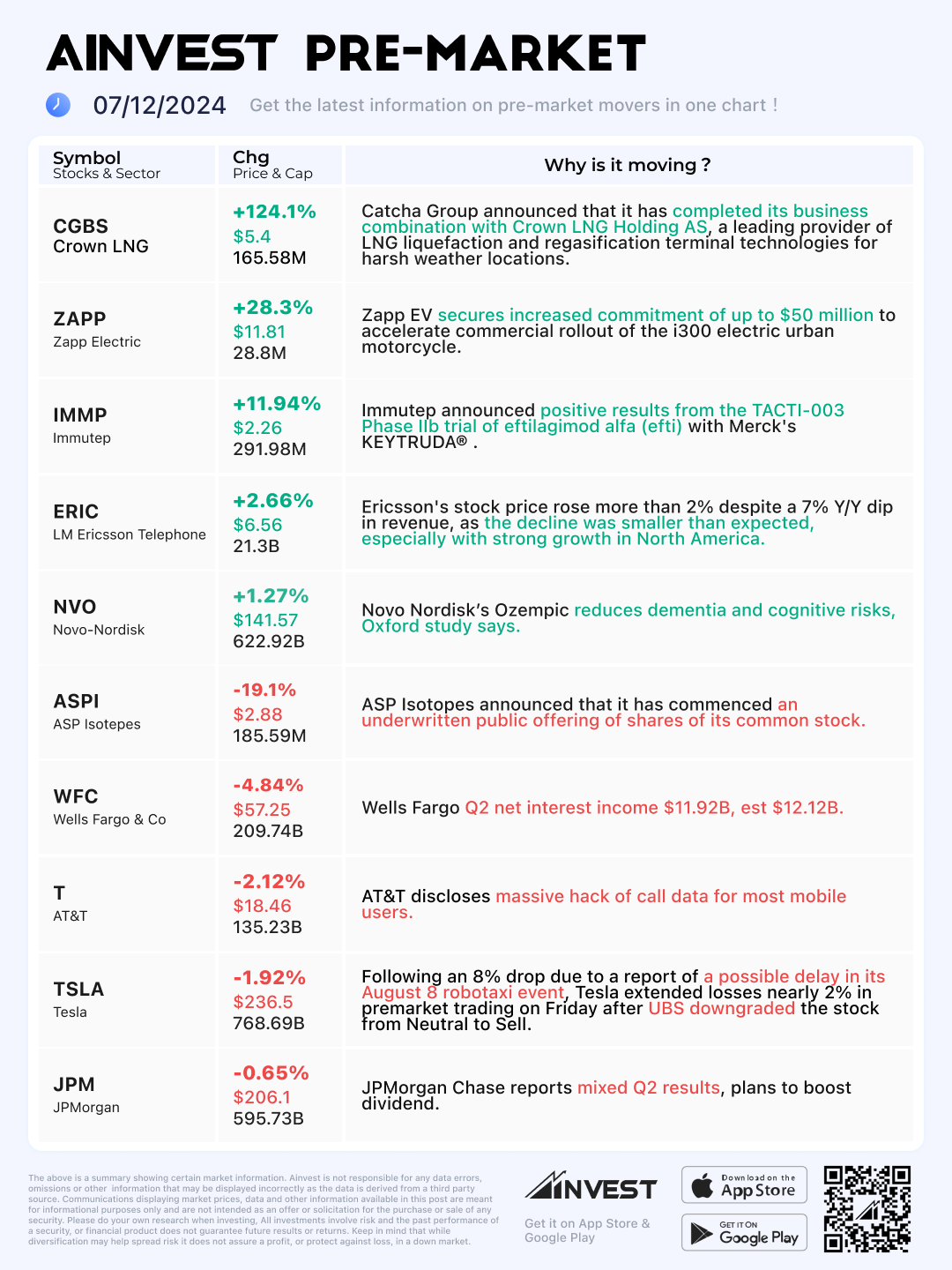 Jul. 12 Pre-market Movers Board: Wells Fargo shares drop 5% after Q2 interest income miss