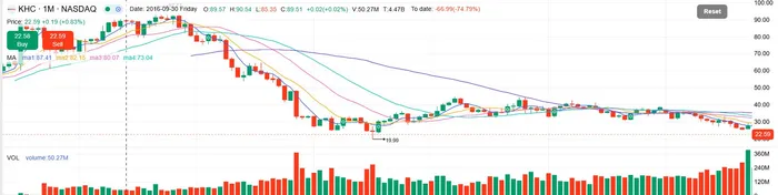 Here's what happened: KraftKHC-- HeinzKHC-- filed a prospectus Tuesday registering the potential sale of all 325 million Berkshire-owned shares—27.5% of the company. KHCKHC-- dropped 5% after-hours to $22.59, then closed Wednesday around $22.34. Volume hit 16.85 million shares, well above the 14.56 million average. The stock is now 65% below its February 2017 peak of $65.