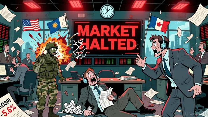 The Korean stock market triggered circuit breakers for the second consecutive day on March 3, 2026, amid volatile trading conditions. The KOSPI index fell over 5.6% intraday, causing a temporary halt in trading. This extreme market turbulence was attributed to rising geopolitical tensions in the Middle East.
