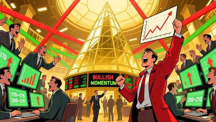 Key Fibonacci levels from the recent low (~$130 in early December 2025) to the current high (~$210) include 38.2% at ~$175 and 50% at ~$170. These levels align with prior support zones and could act as critical areas for a potential bounce. A breakdown below the 61.8% retracement level (~$160) may invalidate the bullish case, targeting the previous consolidation range (~$150–$160).The confluence of bullish signals—rising wedge, golden cross, and expanding volume—strengthens the case for a continuation of the uptrend. However, overbought RSI and Stochastic levels highlight the risk of a near-term correction. Divergences to monitor include weakening volume during rallies or bearish MACD crossovers. Probabilistically, a retest of $170–$175 appears likely, with a successful hold favoring a resumption of the upward trajectory toward $220–$230.