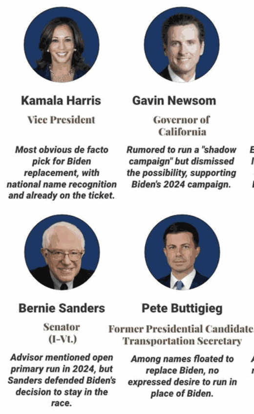With Biden's withdrawal from the 2024 presidential contest, the immediate priority shifts to the identification of the next candidate to throw their hat into the ring. Despite Biden's full-throated endorsement of Vice President Harris as the Democratic presidential nominee, the party's institutional framework allows for a cadre of eligible contenders. Let's examine the field of prospective candidates within the Democratic Party.