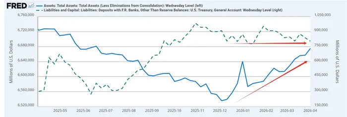 However, longer-term liquidity is showing more constructive signals. The Fed's balance sheet continues to trend upward following the halt of runoff since December, while the Treasury General Account has stabilized and even declined in recent sessions. This combination implies that dollar liquidity is not being meaningfully withdrawn from the system. As a result, the macro backdrop remains supportive for risk assets once uncertainty begins to ease. The market is not facing a structural liquidity constraint, but rather a temporary pause as participants reassess evolving risks.
