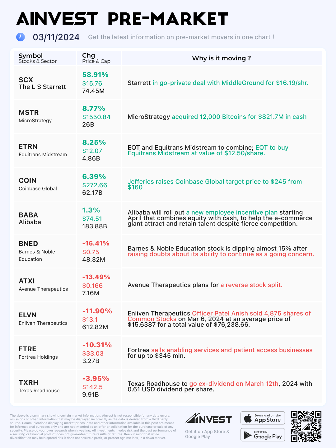 Mar. 11 Pre-market Movers Board: Alibaba shares rise 1.3% on a new employee incentive plan