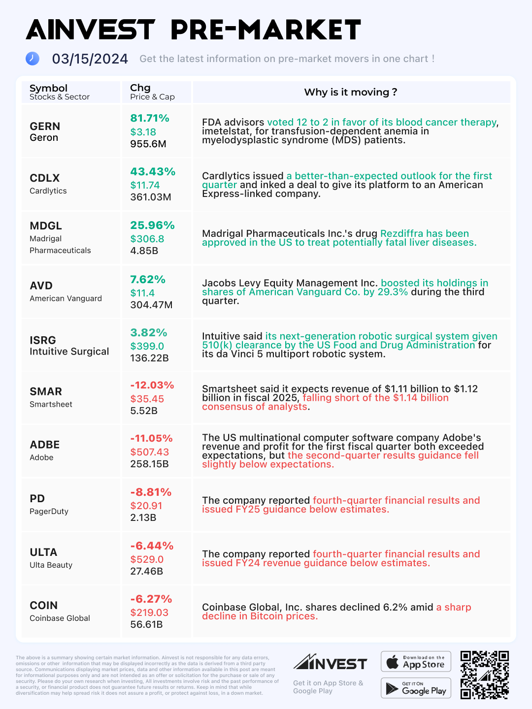 Mar. 15 Pre-market Movers Board: Adobe shares slip 11% on soft sales forecast