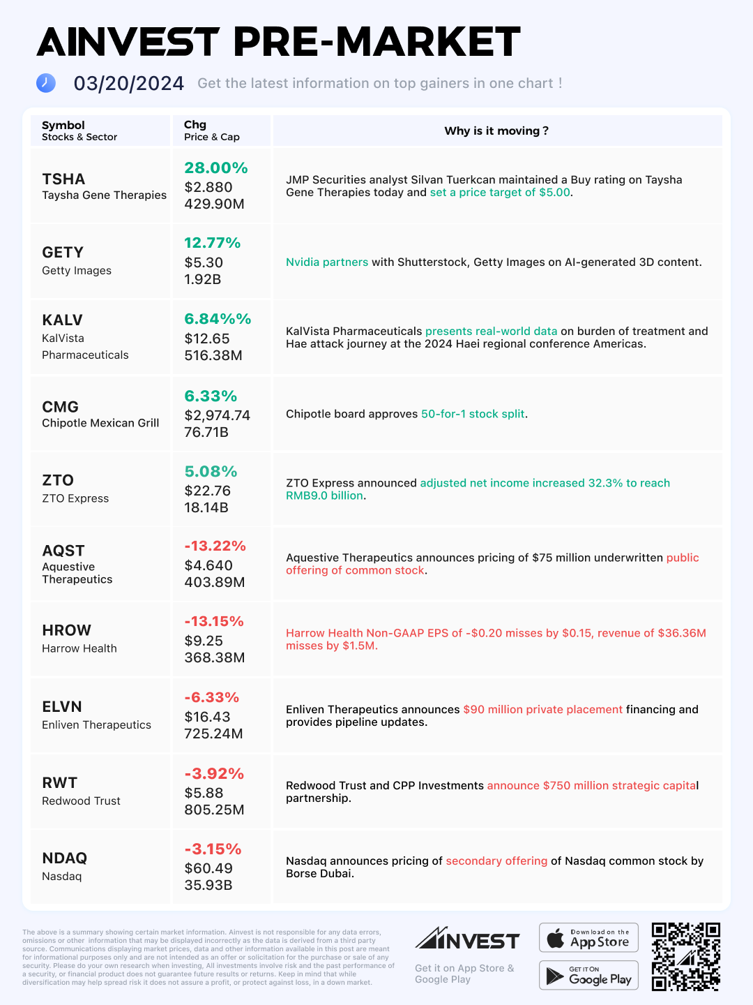 Mar. 20 Pre-market Movers Board: Nasdaq stock drops 3% after announcement of secondary offering