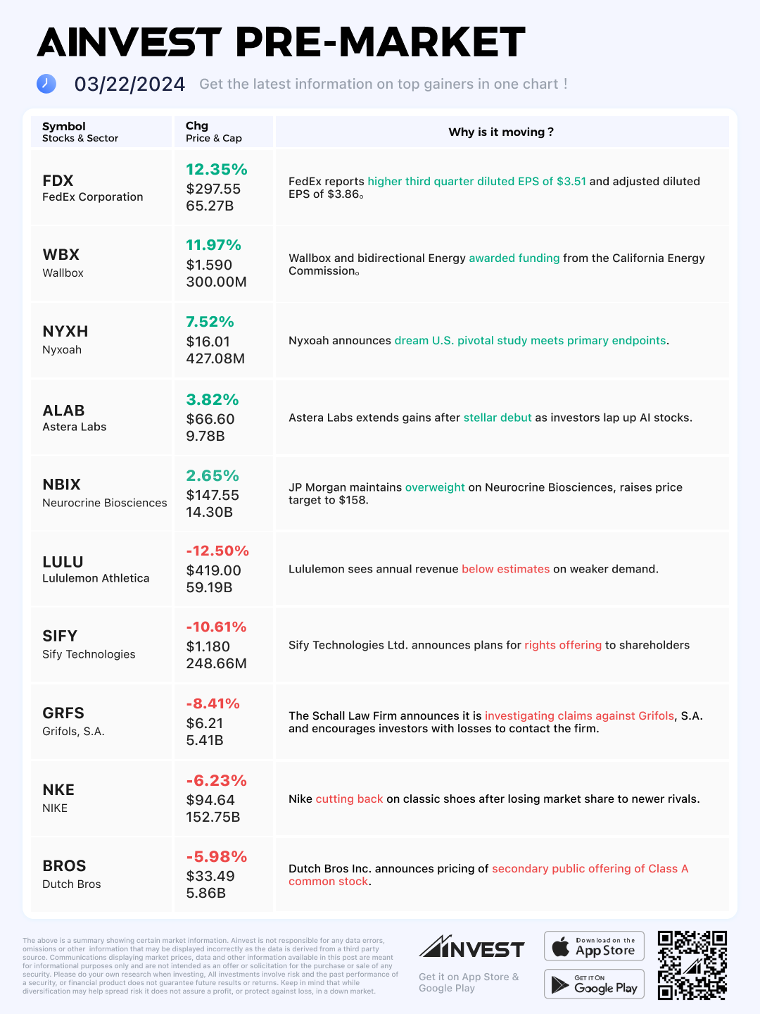 Mar. 22 Pre-market Movers Board: FedEx's stock jumps 12% after logistics company raises guidance, trims spending