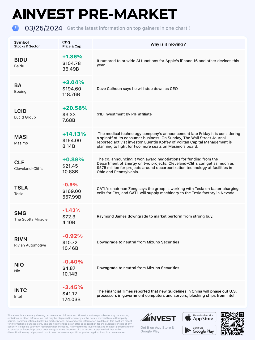 Mar. 25 Pre-market Movers Board: Lucid Group surged 20% premarket after it announced $1B investment by PIF affiliate