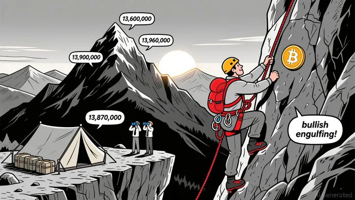 Recent 5-minute swings show price retesting the 61.8% retracement level at 13,820,000 before rallying. On the daily chart, the 38.2% Fibonacci level at 13,920,000 appears to be a key short-term resistance.
