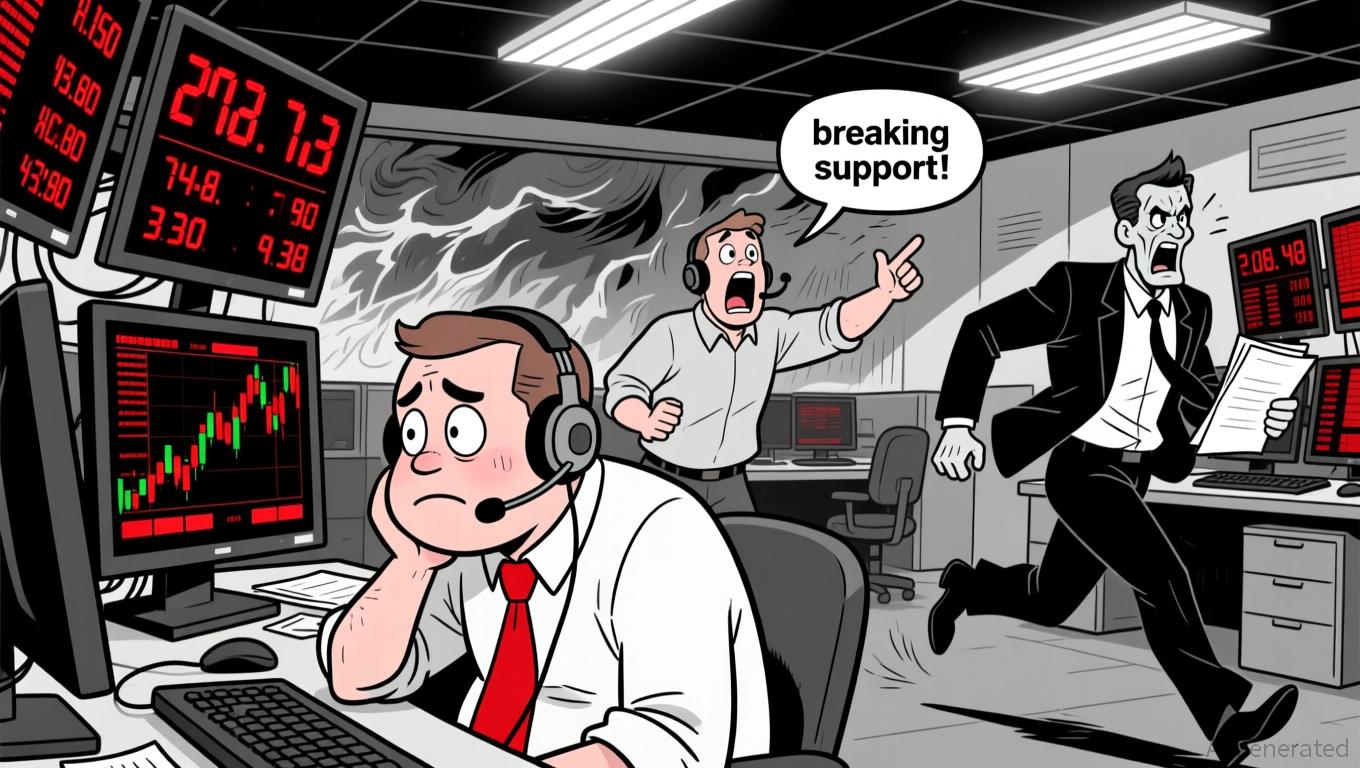 The RSI entered oversold territory near 30 during the breakdown, hinting at potential buying interest. However, the MACD remained bearish with a narrowing histogram, suggesting momentum has yet to reverse decisively. Bollinger Bands contracted sharply before the breakdown, setting up a high-volatility move that has now materialized.