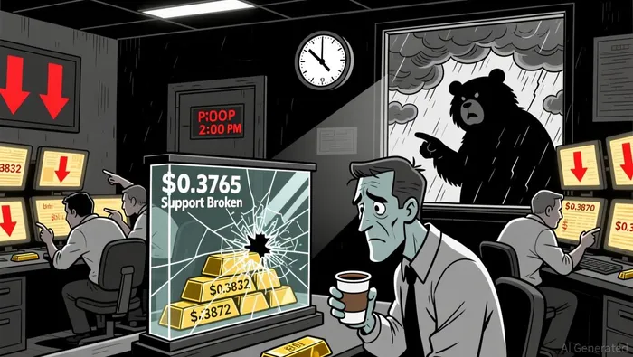 On the 5-minute chart, the 20-period and 50-period moving averages both trended lower, reflecting the bearish bias in the session. The 50-period MA currently sits near $0.3810. RSI on the same timeframe reached oversold territory near 25, hinting at potential short-term bounce, while MACD showed a bearish crossover and negative histogram throughout the session. Daily MAs remain mixed, with the 100-period at $0.3845 and 200-period at $0.3885, placing the current close well below both.