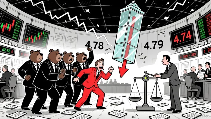 Looking ahead, price may test 4.74 for further confirmation of a base or trigger a rebound. However, with bearish momentum intact and volume confirming selling pressure, traders should remain cautious of a potential test of 4.70–4.72 if short-term buyers do not emerge.