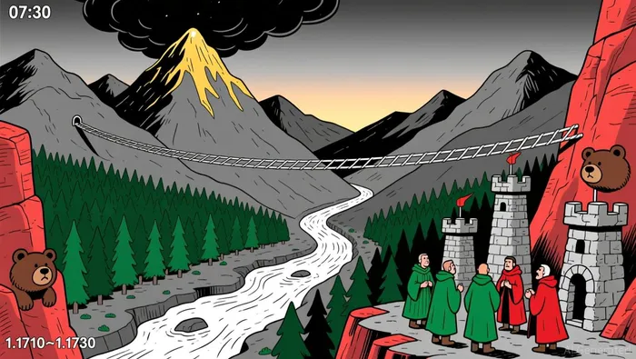 • Price remains in a tight range between 1.1710–1.1730 with no clear breakout direction.