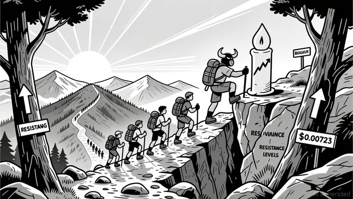 The price may consolidate near key resistance levels over the next 24 hours, with a risk of a short-term pullback if volume weakens. Investors should watch for a confirmation candle above $0.00723 for a stronger bullish signal.