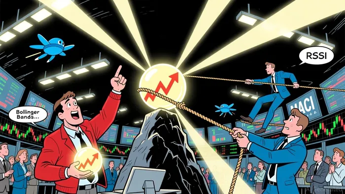 • Bollinger Bands widened late morning, showing rising volatility before a pullback to mid-band support.