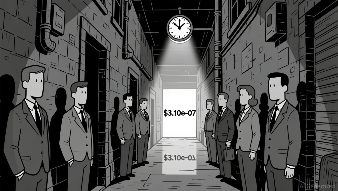 The 24-hour period saw minimal price movement, consolidating in a narrow range near $3.10e-07. No significant candlestick patterns emerged, such as engulfing or doji formations. Key resistance appears to be forming near the $3.10e-07 level, while support is seen at $3.00e-07.