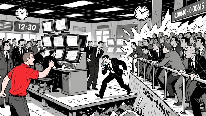 The 20-period and 50-period moving averages on the 5-minute chart crossed bearishly toward the end of the session, confirming the downward shift in sentiment. RSI reached an oversold reading near 25 during the drop to 0.00597, hinting at a possible rebound or sideways consolidation in the near term. MACD turned bearish, with the histogram widening during the sharp sell-off from 15:00 to 17:00 ET.