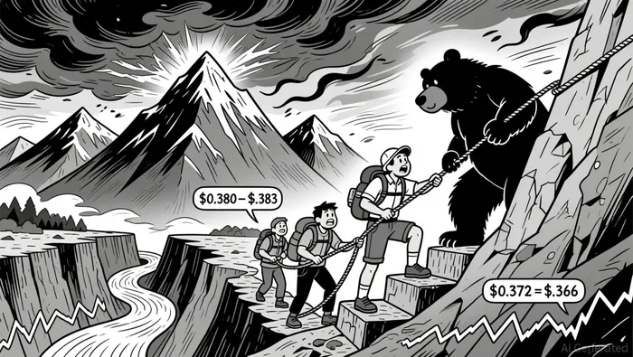 The 5-minute OHLCV data showed a volatile session, with a sharp decline from $0.380 to $0.356 during the last three hours, driven by a massive volume spike. A key support level appeared at $0.372, where price found short-term stability, but failed to hold above $0.380.