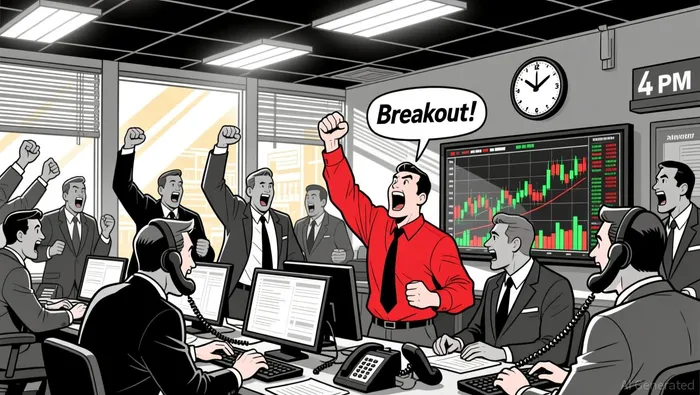 • Volume surged during the 16:30–17:00 ET window, confirming the uptrend with high notional turnover.