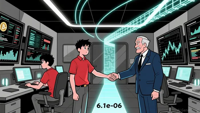 The 20-period and 50-period moving averages on the 5-minute chart crossed around 6.1e-06, forming a potential short-term convergence point. The 50-period MA acted as a dynamic support during the 5–9 AM ET range, while price tested but failed to break the 6.12e-06 level, suggesting continued consolidation.