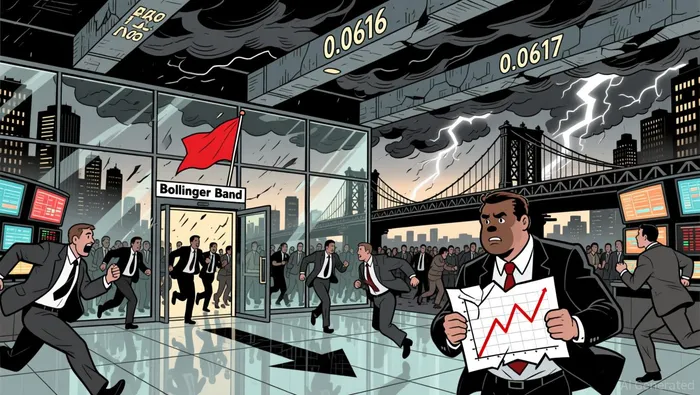 A contraction in volatility occurred around 01:00–04:00 ET, followed by a sharp expansion as price broke below the lower band. This suggests a breakout on the downside that could target the next key level near 0.0610–0.0605.