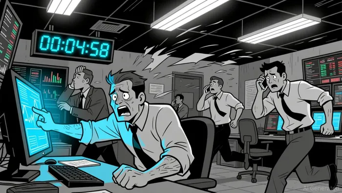The 20-period and 50-period EMA on the 5-minute chart converged in a bearish alignment below price action, confirming a short-term downtrend. The MACD remained negative for most of the day, with a bearish crossover forming just before the sharp decline. RSI dipped into oversold territory below 30, suggesting a potential short-term bounce, though bullish momentum is weak. Bollinger Bands widened during the breakdown phase, reflecting increased volatility. Price closed near the lower band, reinforcing bearish bias.