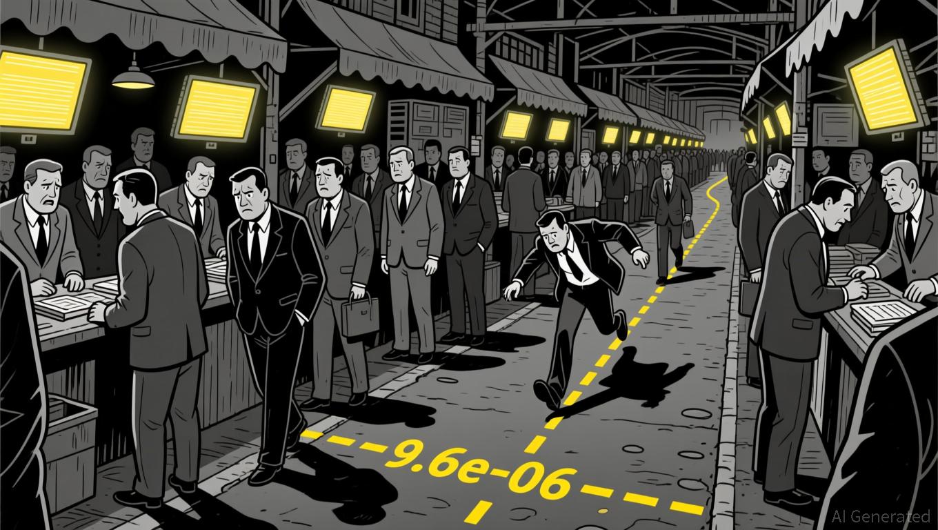 Price action over the last 24 hours displayed a bearish drift, with a late-day bearish engulfing pattern forming after a brief attempt to rebound. A potential support level emerges near 9.6e-06, where price has bounced multiple times.